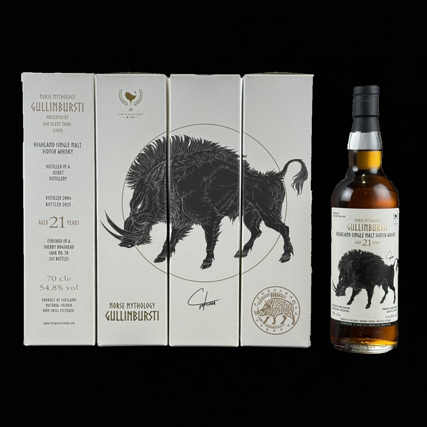 Silent Third主理人橋本先生選酒時,特別定位此款為既溫暖又帶有野性張力的雪莉桶威士忌,最終選中這款來自高地本尼維斯山腳的匿名酒廠,使用泥煤麥芽,於2004年蒸餾後先在波本桶熟成20年,再移至雪莉桶熟成一年,展現出罕見濃郁果香交織礦石氣息與煙燻石板烤肉的炙熱感,深邃強勁的風味,如同神話中的野獸,外表粗獷,內在卻飽含層次與野性詩意,具備史詩般的精神意涵與傳奇氛圍。