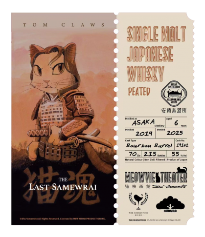 每個人心中,都藏著幾部難以忘懷的經典電影,無論是歡樂喜劇、浪漫愛情、魔幻冒險、戰爭史詩等,當年大銀幕上的經典畫面,始終鮮明如初。這一次,就讓擅長用酒說故事的The Whiskyfind,攜手山本修老師獨特的貓咪宇宙,帶你走進風味與情感交織的「猫映画館」,用一支支風味層次豐富的液態藝術,陪你重溫當年深植心底的電影回憶。末代喵武士 The Last Samewrai