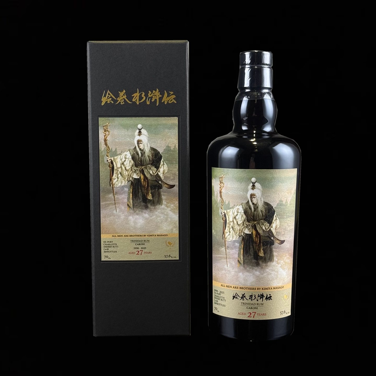 公孫勝原為二仙山羅真人們下道士,通曉五行道術,能呼風喚雨、驅使鬼神,是梁山的核心軍師與法術擔當。其性格淡泊卻深明大義,曾因師命與探母兩度離開梁山,卻總在關鍵戰役回歸。征戰中,他以法術屢破敵陣,展現「以道制邪」的玄奇色彩。然而他深知「殺戮違天」,於平定方臘前毅然辭別宋江,歸隱修道,成為少數善終的梁山好漢。酒款採用來自知名的關廠蘭姆酒廠Caroni,典型的煙草、焦油與熱帶水果,是眾多蘭姆酒愛好者中的夢幻逸品。此次透過 Port Charlotte泥煤雪莉桶耗時三年的二次熟成,如同在梁山中帶有玄奇色彩的公孫勝,一道五雷天罡的泥煤煙燻,一股仙風道骨的幽幽檀香,層次複雜多變,帶來濃烈的神秘風味色彩。