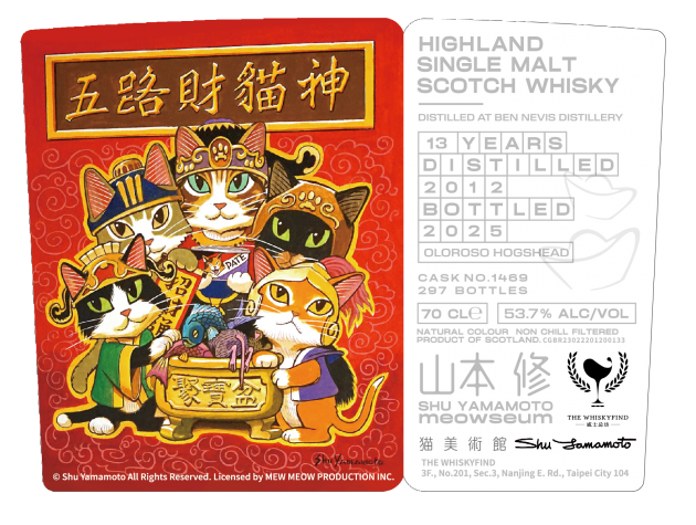 擅長用威士忌說故事的The Whiskyfind獨家取得山本修的授權,用威士忌來詮釋一幅幅喵化後的世界名畫,這個跨界的合作案,就是貓美術館(Meowseum)典藏威士忌!五路財貓神