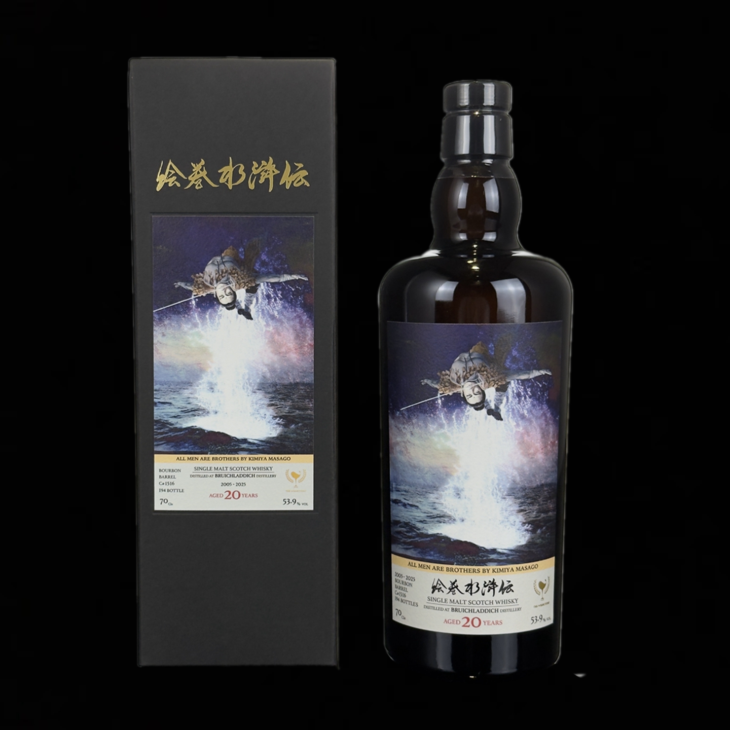 張順,綽號「浪裡白跳」,其意為在浪裡翻騰,如白魚躍波,來去無蹤,是梁山水軍的王牌悍將。其性烈重義,因結識宋江、李逵而投身梁山,多次以水戰立奇功。征討方臘時,張順為救宋江,潛入杭州探查敵情,遭敵軍亂箭射殺於水門之下。『水』-- 是張順最強的地方,亦是他最後的歸宿,透過小說的描寫,張順成為最富傳奇色彩的英雄之一。本作酒款選自艾雷島名廠布萊迪Bruichladdich,於2005年蒸餾,熟成20年的波本單桶。聞香時標誌性的起司氣息率先浮現,隨之而來的是輕盈而層層遞進的煙燻泥煤,在海潮般的鹹感做為背景支撐下,豐富的水果、優格、爆米花、鹹檸七等風味層遞而出,酒體油潤細緻,層次轉化絲滑,有如正子公也筆下的張順:口中銜劍,從水下一躍而出,動作俐落、行雲流水,宛如水中刺客!