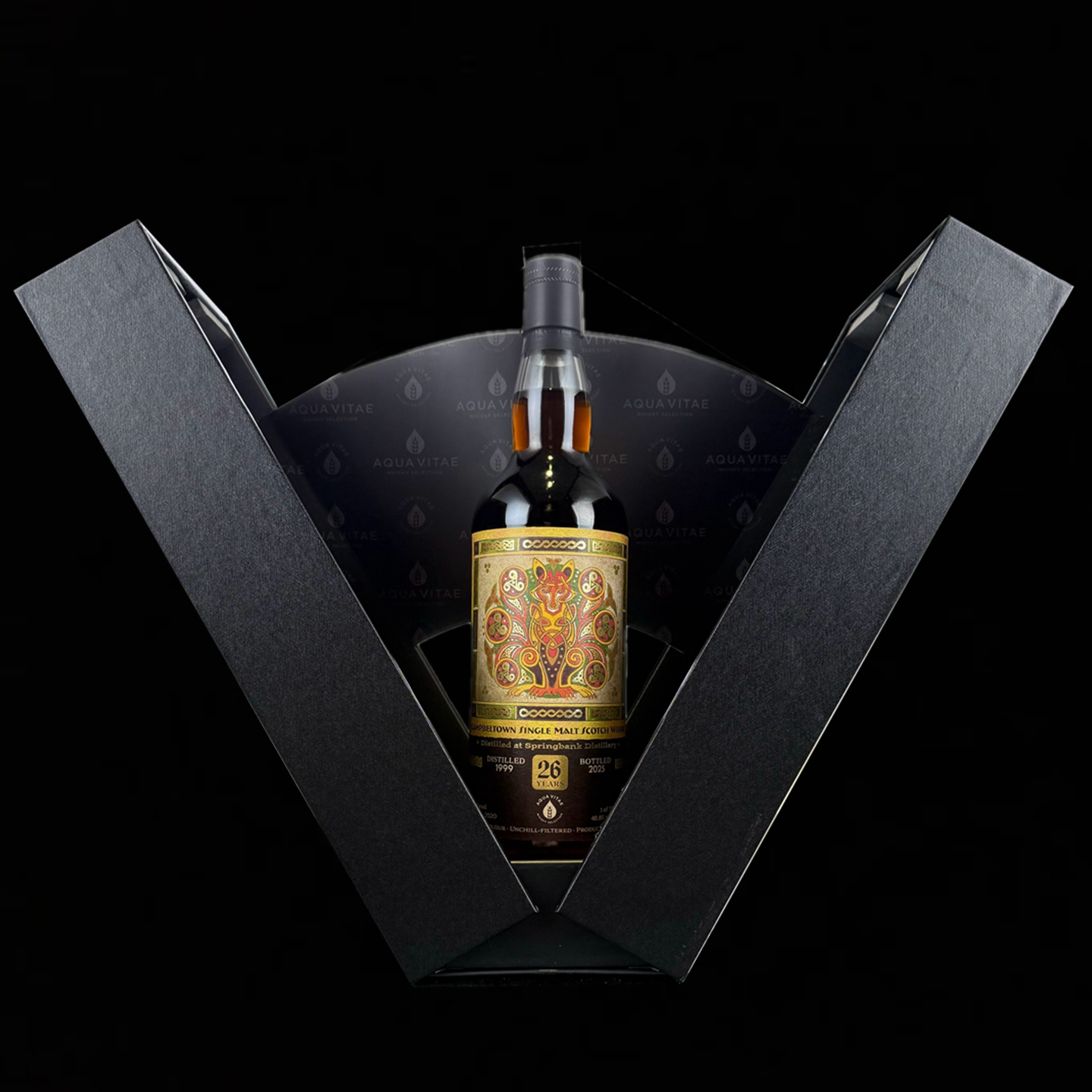 AQUA VITAE 2026 年度系列《萬象之書》,共「六款威士忌」篇章-雪鴞、豹貓、海豹、赤狐、皇帶魚、巨嘴鳥。靈感源自 Book of Kells,不僅承襲其華麗的風格,更延續典籍寓言的精神。此系列象徵世界的萬象,以人類為起點,探索不同面貌與寓言。六款酒分別取自陸地、海洋與天空,展現人類覺醒的階段。Springbank 1999/2025 26Yo-赤狐之書