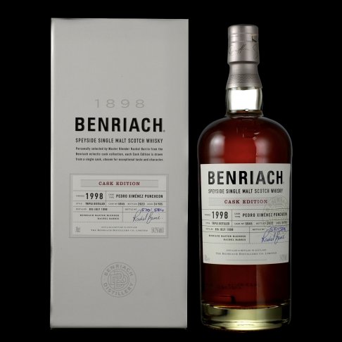 班瑞克酒廠創立於 1898 年,儘管酒窖的粗獷牆壁看起來很不起眼,在威士忌蒸餾與多種橡木桶熟成方面,卻擁有罕見的創意性專業知識。.專業的班瑞克團隊投注了大量時間,打造出獲獎無數的斯佩賽單一麥芽威士忌,並且無時無刻突破各種風味的可能性。我們很驕傲地說,風味的可能性尚未達到極限。BenRiach 1998/2023 24Yo #5945