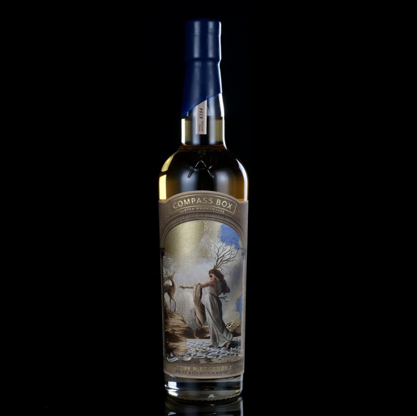 威海指南針COMPASS BOX由怪傑調酒大師-John Glaser於西元2000年創立,他為了創作出沒人做過的優異威士忌,不斷衝撞蘇格蘭威士忌法令禁忌,這樣的信念讓威海指南針COMPASS BOX在十年內勇奪超過一百面大獎,榮獲六屆Innovator Of The Year;而首席調酒師John Glaser則成為業界公認而受尊敬的威士忌大師;也因此全球知名威士忌大師-Michael Jackson喝過COMPASS BOX後,忍不住讚嘆COMPASS BOX為「引領未來的指南針A Direction For The Future.」Myths & Legends I