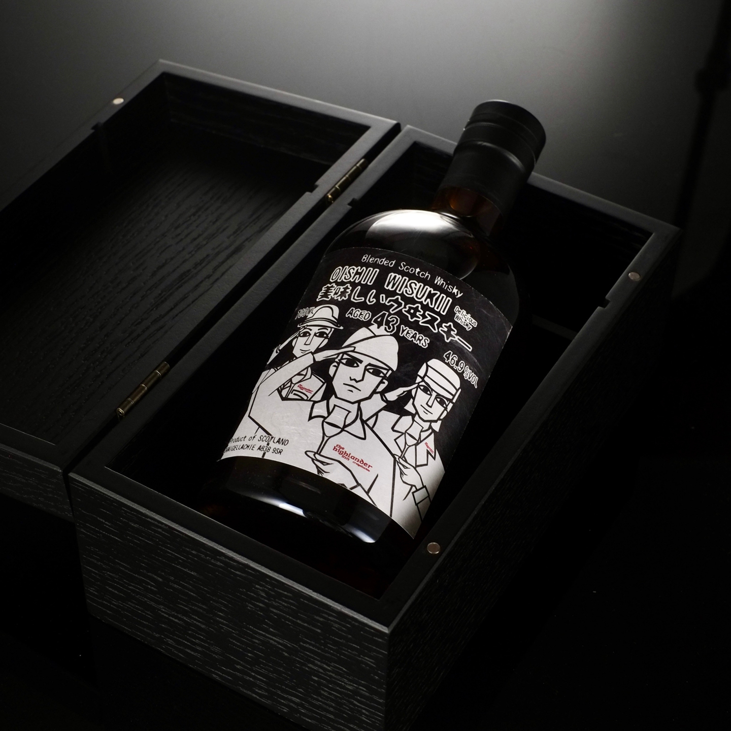 "Oishii Wisukii",源自日文「美味しいウヰスキー」,意為「美味的威士忌」,這款威士忌以其非凡的年份與超凡的品質,向世界展現了調和威士忌的極致魅力。這款Highlander Inn 的特別裝瓶,融合了來自 Macallan、Glenrothes 和 Highland Park 的單一麥芽威士忌,以及未知來源的穀物威士忌,經過 43 年的熟成,打造出一款充滿驚喜的調和佳釀。