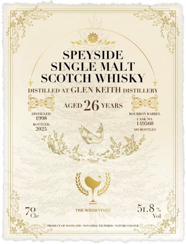 在斯佩賽的河畔小鎮,一段低語已靜靜流淌了二十六年。Glen Keith 酒廠於1958年開始投產,早期是做為集團調和威士忌的實驗平台,而後定調以優雅細膩、充滿果香的酒液著稱,為無數調和威士忌注入靈魂,如今,它以單一酒桶的姿態,訴說屬於自己的篇章。