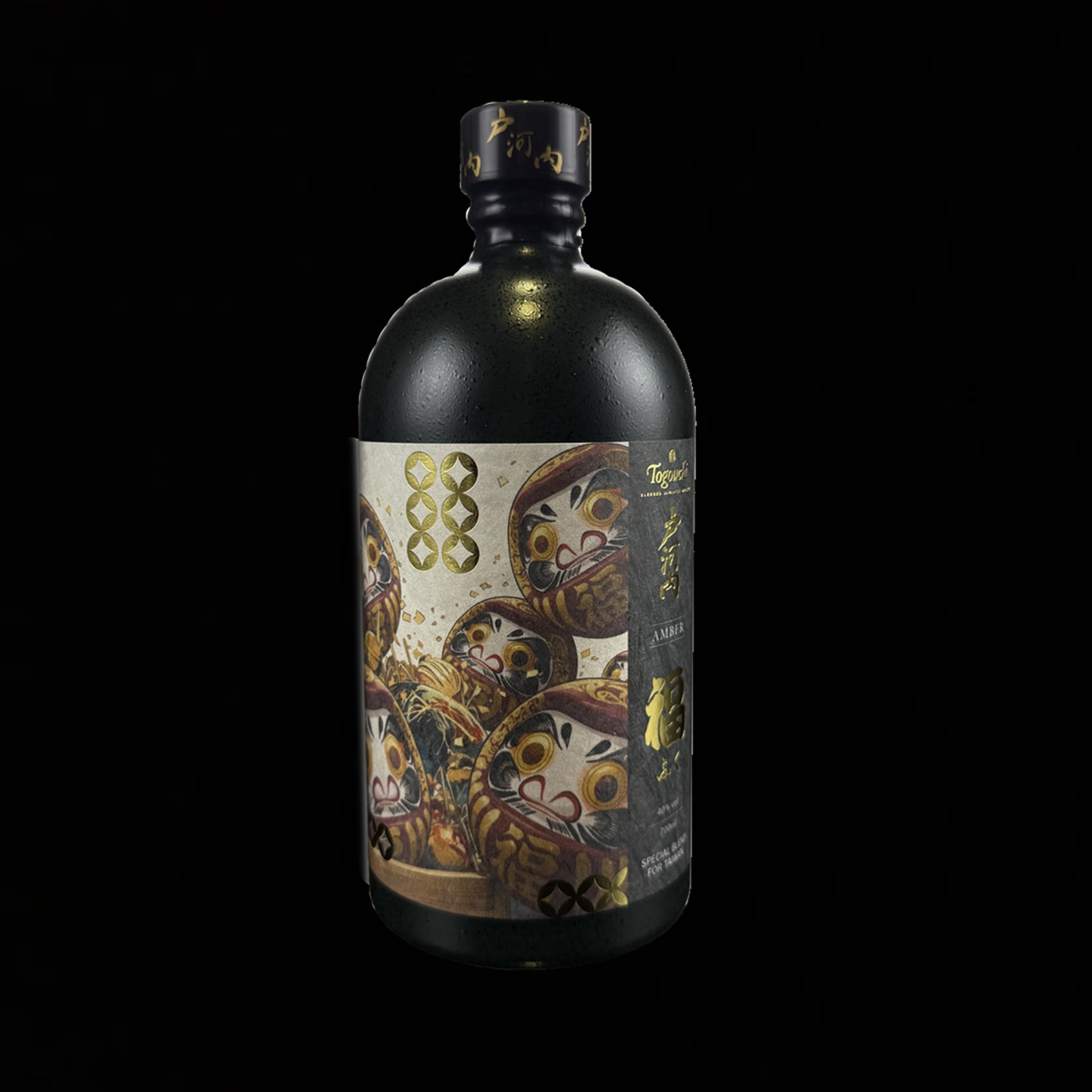 酒標以櫻尾「一代彌山」清酒色為基調,融入和柄展現情感:「綠」象徵健康平安,「金」寓意財運事業,「藍」表示綠芽與櫻尾的深厚羈絆。達摩雙眼留白,期許當這份心意被款贈時,能邀邀請對方一同許下願望,在畫下眼睛的那瞬間,不只代表祈福,更象徵著行動的決心與責任的開始。